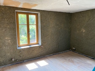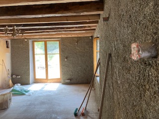 – Préparation avant isolation en béton chanvre et le béton de chanvre mis en place